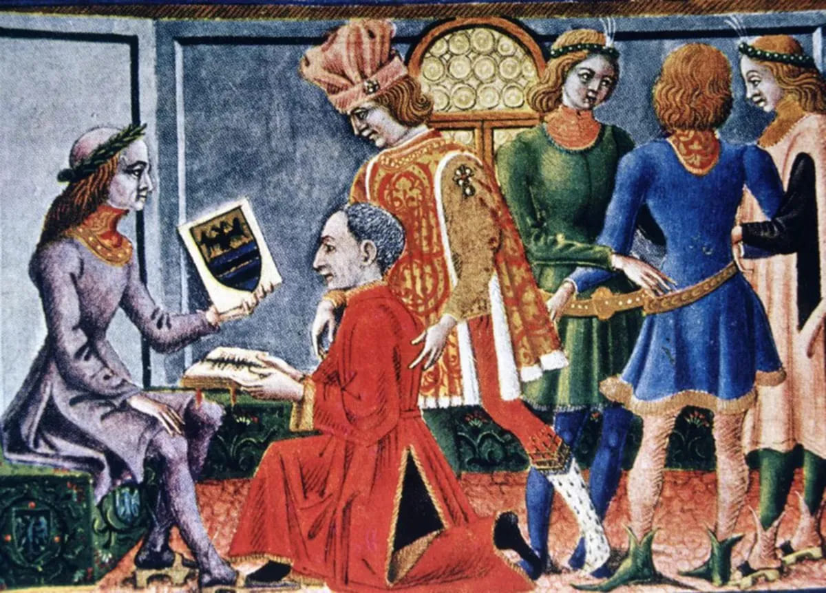 جووانی بیانچینی ستارهشناس در حال معرفی کتاب Tabulae Astrologiae به امپراطور فردریک سوم